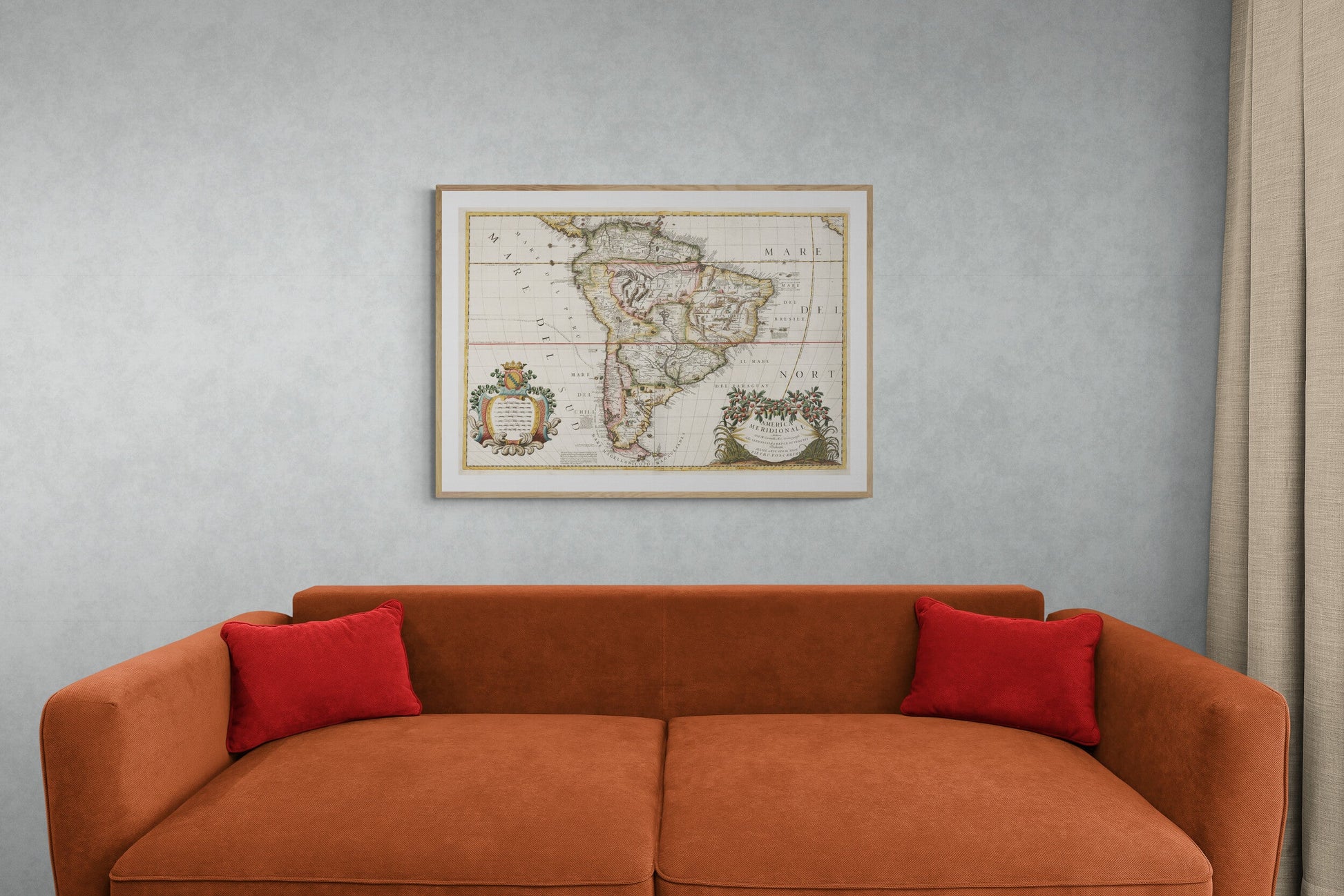 This is a splendid fine print reproduction of Coronelli¡¯s famous two-sheet map of South America, done in a specific, grand style consistent with his famous globes. The map is a landmark work in the cartographic history of South America and stand-out example of 17th century map makers blending knowledge and imagination to offer a most fantastic and captivating map.?