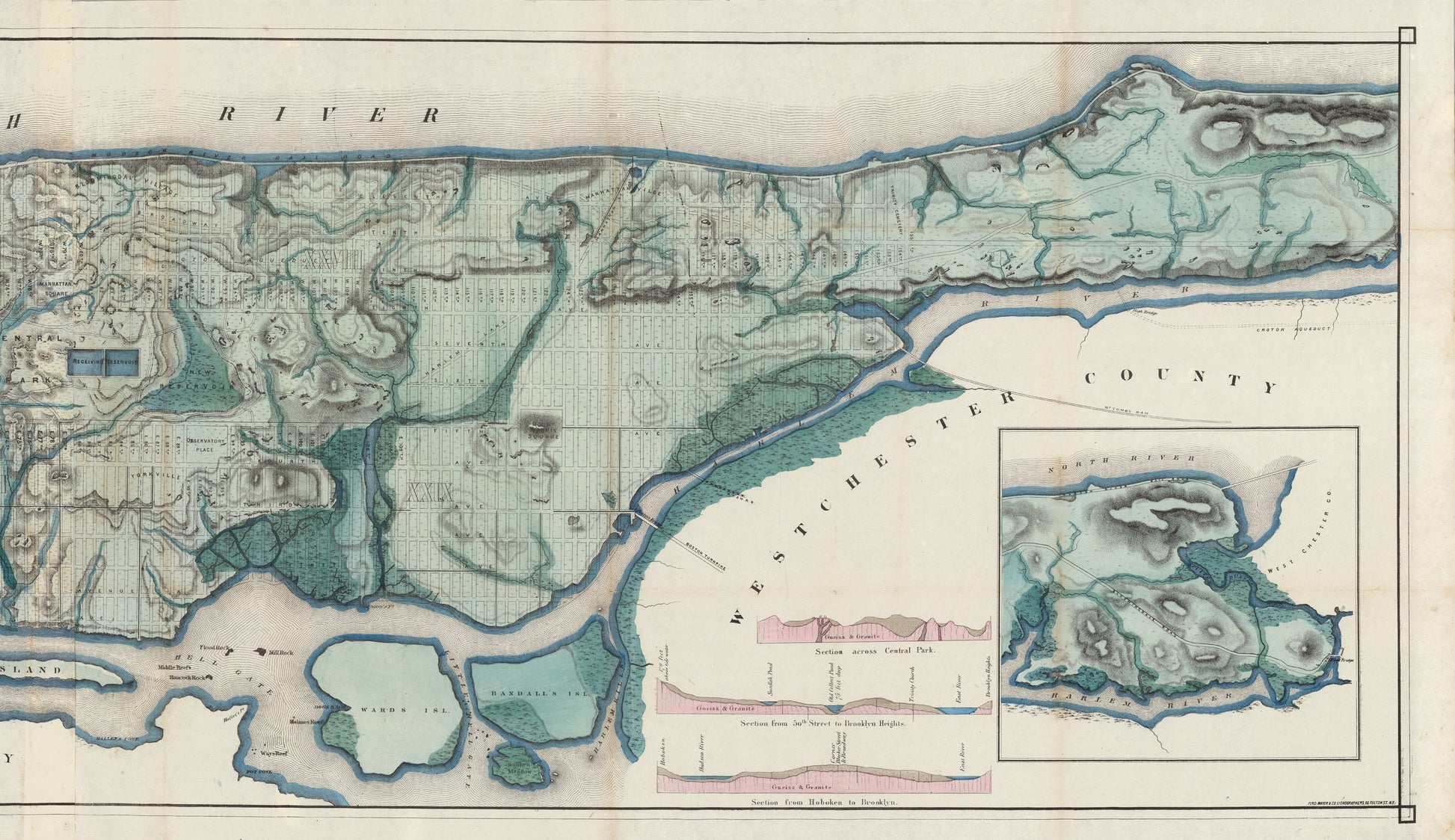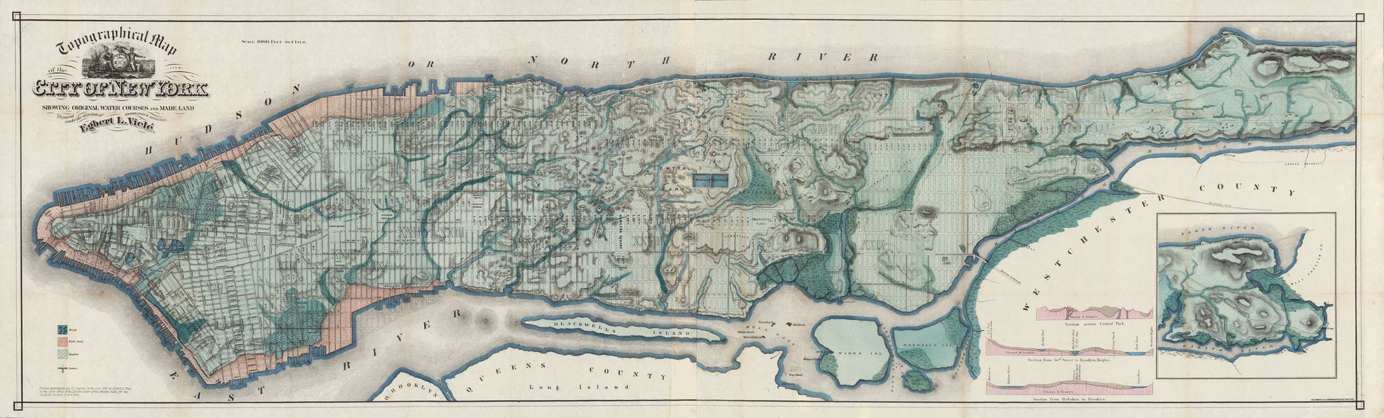 Topographical Map of the City of New York. Showing Original Water Courses and Made Land.
