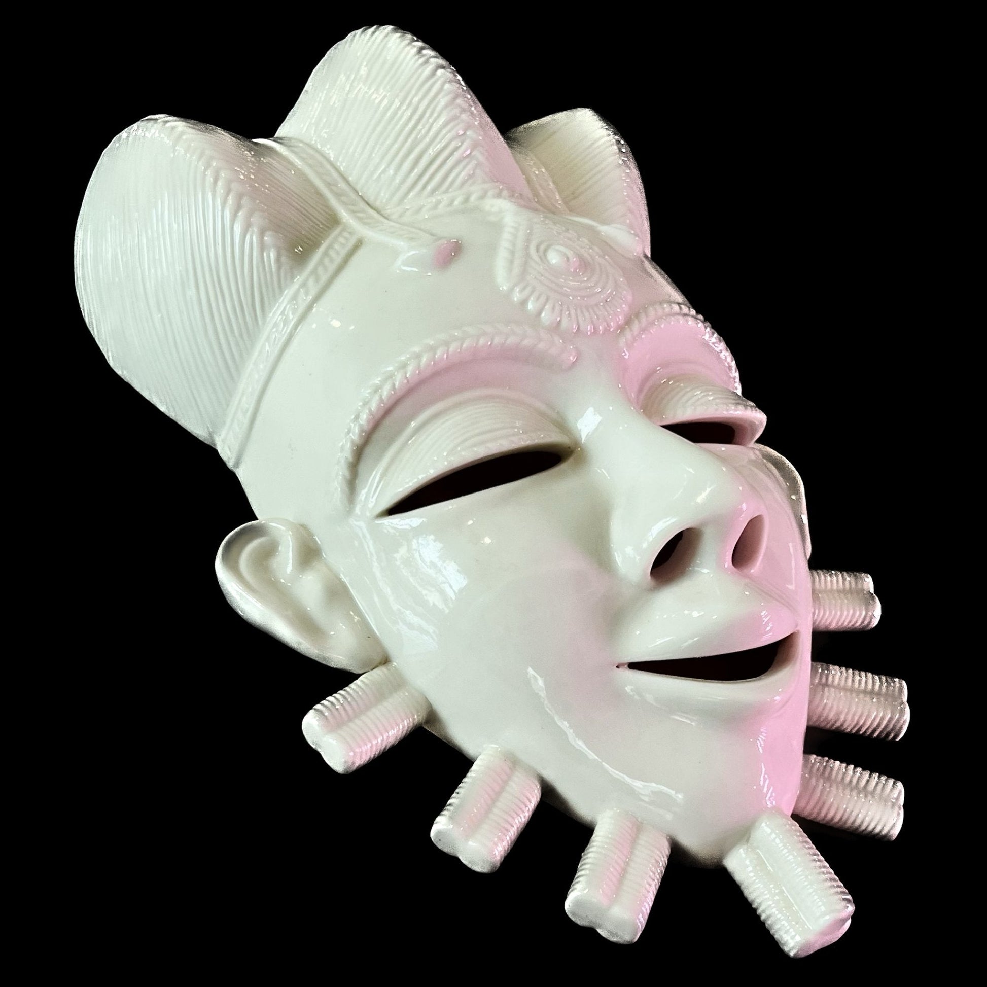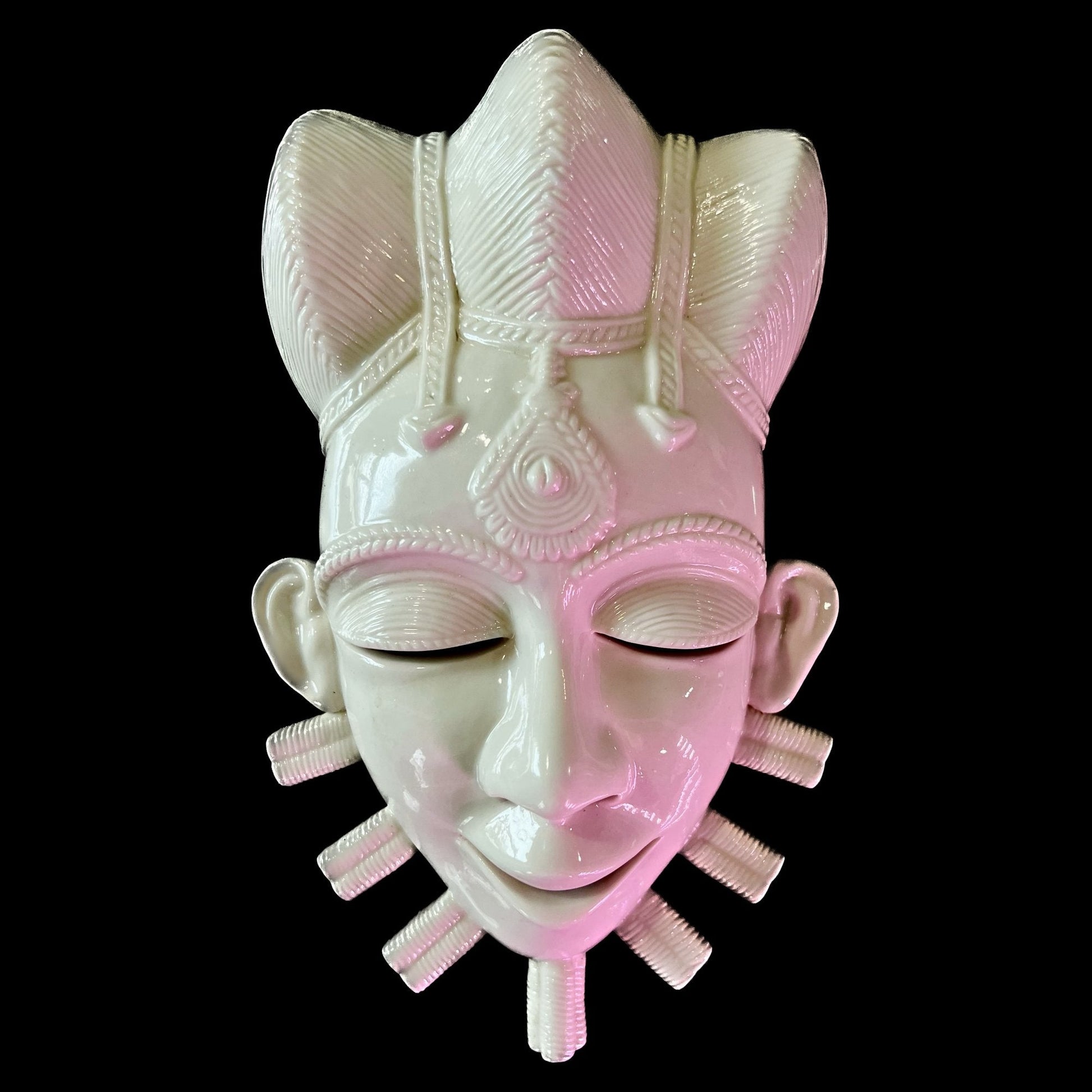 The use of masks was essential to communicating with the spirit world for African people. This limited edition African tribal mask is crafted of blanc de chine porcelain and measures?6?1/2 x 3 x 10?1/2 tall.