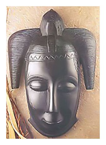Hand carved of black marble with great attention to detail and symmetry, this tribal mask brings an age-old artistry to its surroundings. 6L x 3W x 9
