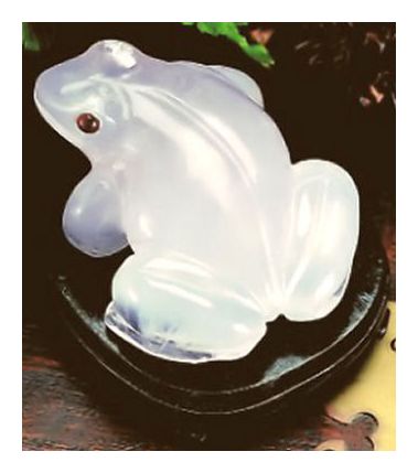 Frogs sometimes symbolize the highest stage of evolution, although a prince might not agree. Ours is hand carved of lilac agate with garnet eyes. The 3L x 2