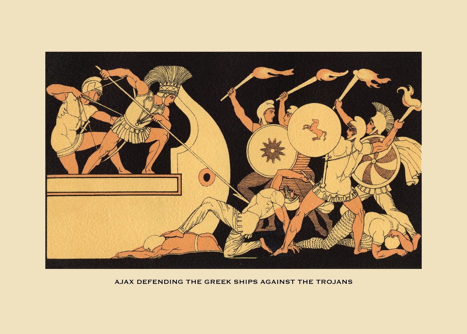 This vintage reproduction of Ajax Defending The Greek Ships Against The Trojans Print is a faithful representation of an original 19th-century engraving ¡ª perfect for classic interiors and collectors of antique-style wall art.