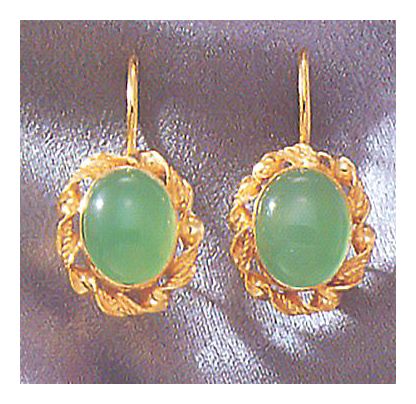 This earring embodies the spirit of Victorian era. These green charms are set in looking glass frames of twisted filigree. Hand crafted of 24k gold over sterling silver, with European backs. Size: 7/8 inch.