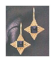A gleaming granule star is the signature of this Roman design. The handcrafted of 24k gold over sterling silver setting holds an onyx stone. Hinged backs. Size: 7/8 Inch.