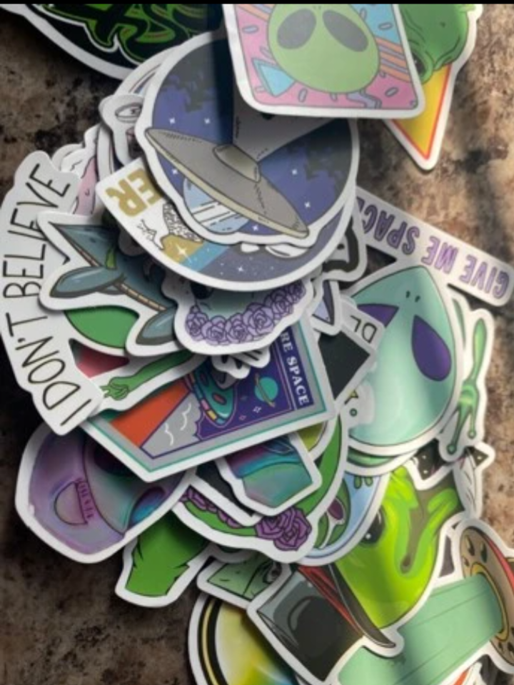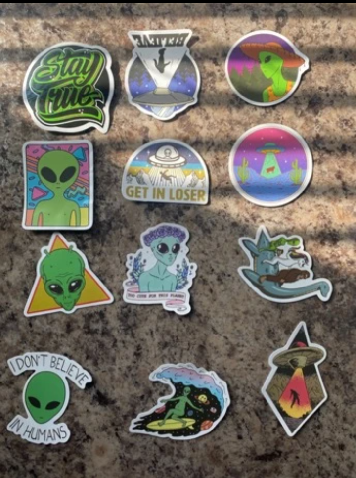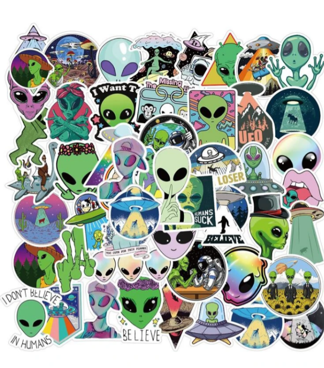 These are really cool Alien stickers.? Decorate your room, locker, folders or anywhere you want to see these little alien faces.