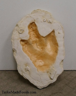 The Allosaurus Print (track imprint) size is 12 x 16.? ?The cast also contains imprints of Shark Tooth, Ammonites, Allosaur Bone, and Allosaur Claw.